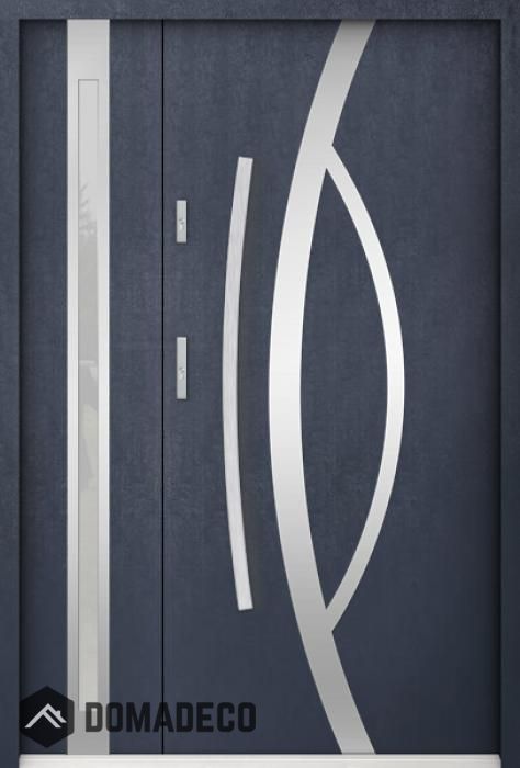 De deur is gemaakt van roestvrij staal. Binnenin is de deur gevuld met PUR-schuim (polyurethaanschuim) en hout. De dikte van het deurblad is 55mm. Dubbel afdichtingssysteem - één afdichting bevindt zich in de deuropening van het kozijn en de andere bevindt zich in het ondersteunende deel van het deurblad. Ze verminderen trillingen en beschermen jouw huis tegen warmteverlies. Ze veranderen hun volume niet onder invloed van atmosferische omstandigheden. Het deurkozijn is in de scharnierdelen en de vergrendelingspunten voorzien van inbraakwerende verstevigingen.