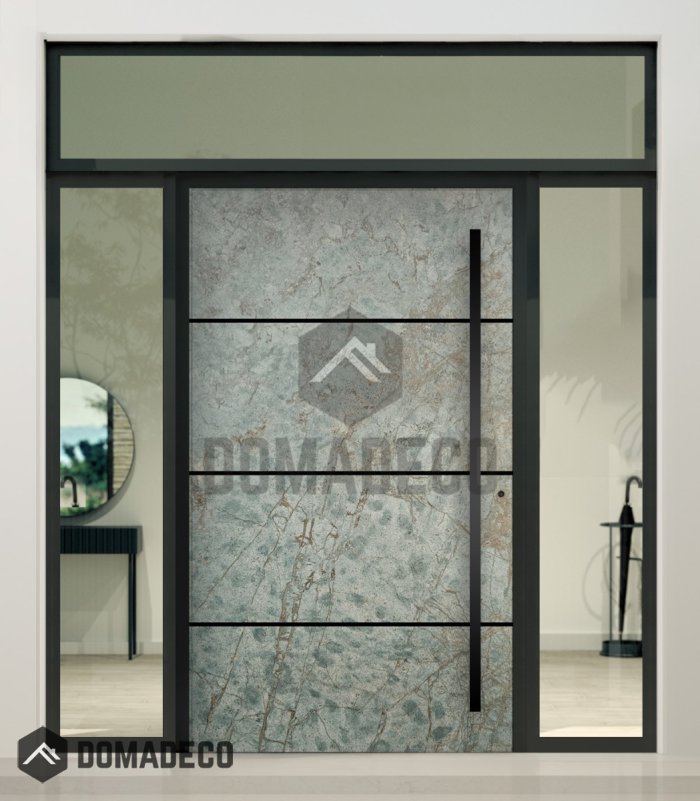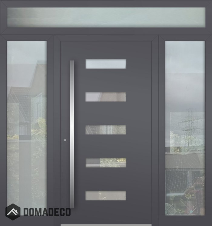 Aluminium LIM scharnierende voordeur met links, rechts en boven glaspaneel