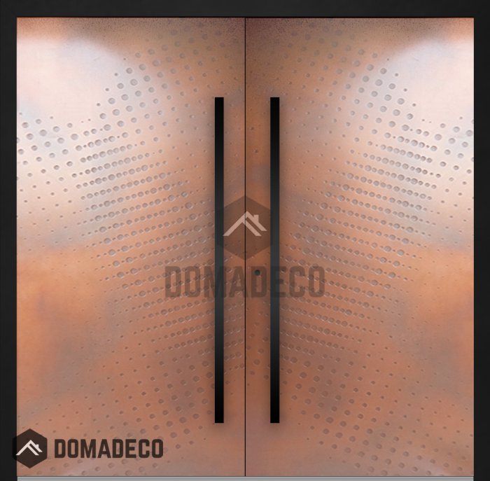 LIM M17 dubbel - Dubbele voordeur in aluminium met koperstructuur van gefreesd metaal