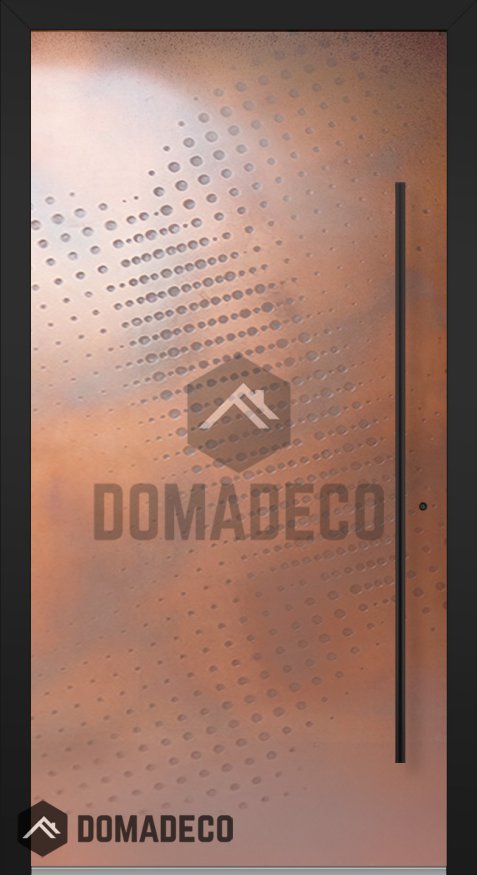 LIM M17 - aluminium scharnierende ingangsdeur met koperstructuur van gefreesd metaal