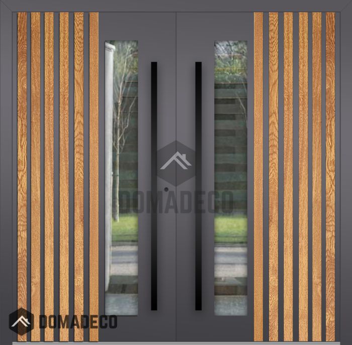 LIM RAIL4 dubbel - aluminium dubbele deur met verticale lamellen en raam