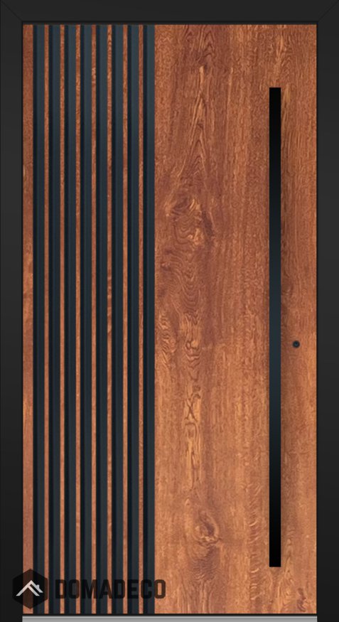 LIM RAIL6 - aluminium voordeur met zwarte verticale lamellen gemaakt van aluminium profielen