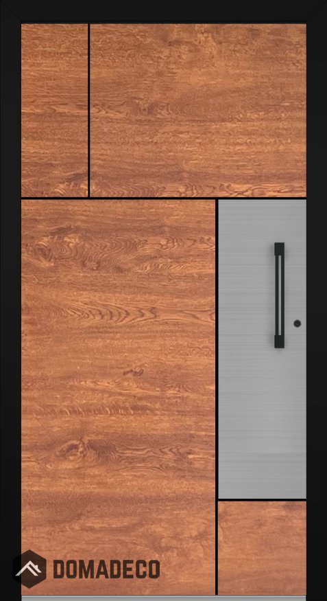 LIM V35 - aluminium voordeur met houtstructuur en inox decor
