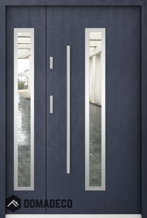 De deur is gemaakt van roestvrij staal. Binnenin is het gevuld met PUR-polyurethaanschuim en hout. De dikte van het deurblad is 55mm. Dubbel afdichtingssysteem - één afdichting bevindt zich in de opening van het kozijn en de andere bevindt zich in het ondersteunende deel van het deurblad. Dit vermindert trillingen en beschermt jouw huis tegen warmteverlies. Het volume verandert niet vonder invloed van atmosferische omstandigheden. Het kozijn heeft in de scharnierdelen en de vergrendelingspunten anti-inbraakversterkingen.