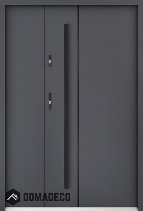 De deur is gemaakt van roestvrij staal. Binnenin is de deur gevuld met PUR-schuim (polyurethaanschuim) en hout. De dikte van het deurblad is 55mm. Dubbel afdichtingssysteem - één afdichting bevindt zich in de deuropening van het kozijn en de andere bevindt zich in het ondersteunende deel van het deurblad. Ze verminderen trillingen en beschermen jouw huis tegen warmteverlies. Ze veranderen hun volume niet onder invloed van atmosferische omstandigheden. Het deurkozijn is in de scharnierdelen en de vergrendelingspunten voorzien van inbraakwerende verstevigingen.
