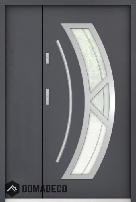 De deur is gemaakt van roestvrij staal. Binnenin is het gevuld met PUR-polyurethaanschuim en hout. De dikte van het deurblad is 55mm. Dubbel afdichtingssysteem - één afdichting bevindt zich in de opening van het kozijn en de andere bevindt zich in het ondersteunende deel van het deurblad. Dit vermindert trillingen en beschermt jouw huis tegen warmteverlies. Het volume verandert niet vonder invloed van atmosferische omstandigheden. Het kozijn heeft in de scharnierdelen en de vergrendelingspunten anti-inbraakversterkingen.
