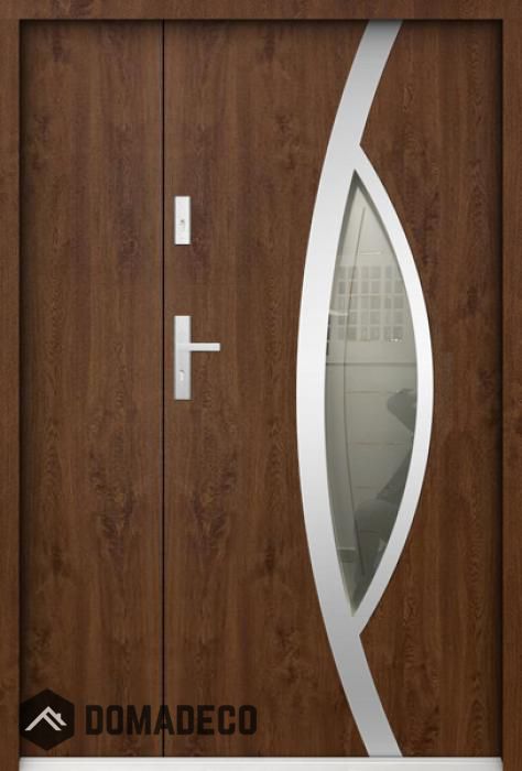 De deur is gemaakt van roestvrij staal. Binnenin is het gevuld met PUR-polyurethaanschuim en hout. De dikte van het deurblad is 55mm. Dubbel afdichtingssysteem - één afdichting bevindt zich in de opening van het kozijn en de andere bevindt zich in het ondersteunende deel van het deurblad. Dit vermindert trillingen en beschermt jouw huis tegen warmteverlies. Het volume verandert niet vonder invloed van atmosferische omstandigheden. Het kozijn heeft in de scharnierdelen en de vergrendelingspunten anti-inbraakversterkingen.