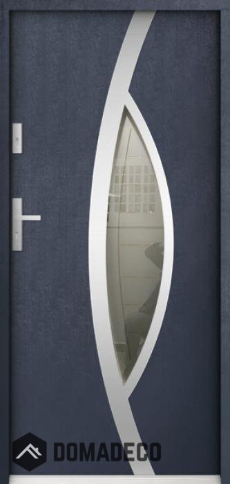 De deur is gemaakt van roestvrij staal. Binnenin is het gevuld met PUR-polyurethaanschuim en hout. De dikte van het deurblad is 55mm. Dubbel afdichtingssysteem - één afdichting bevindt zich in de opening van het kozijn en de andere bevindt zich in het ondersteunende deel van het deurblad. Dit vermindert trillingen en beschermt jouw huis tegen warmteverlies. Het volume verandert niet vonder invloed van atmosferische omstandigheden. Het kozijn heeft in de scharnierdelen en de vergrendelingspunten anti-inbraakversterkingen.