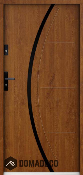 De deur is gemaakt van roestvrij staal. Binnenin is de deur gevuld met PUR-schuim (polyurethaanschuim) en hout. De dikte van het deurblad is 55mm. Dubbel afdichtingssysteem - één afdichting bevindt zich in de deuropening van het kozijn en de andere bevindt zich in het ondersteunende deel van het deurblad. Ze verminderen trillingen en beschermen jouw huis tegen warmteverlies. Ze veranderen hun volume niet onder invloed van atmosferische omstandigheden. Het deurkozijn is in de scharnierdelen en de vergrendelingspunten voorzien van inbraakwerende verstevigingen.