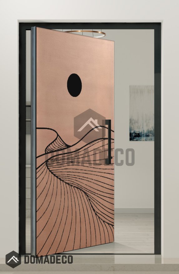 PIVOT M14 - aluminium taatsdeur met koperstructuur van gefreesd metaal