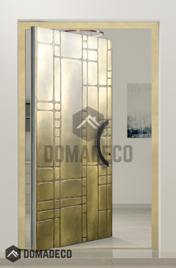 PIVOT M18 - aluminium taatsdeur met geel messing structuur van gefreesd metaal