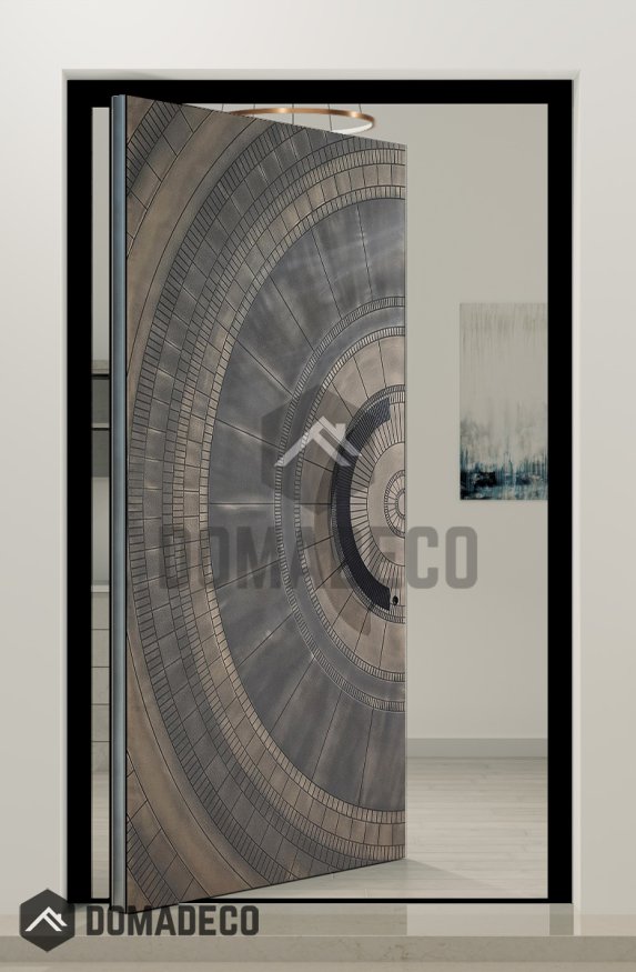 PIVOT M6 - draaideur met bronzen textuur van gefreesd metaal