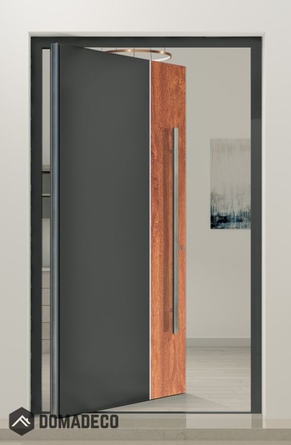 De deur is al op het kozijn gemonteerd (de voordeur), dat scheelt je al het werk. De deur is helemaal klaar voor montage.