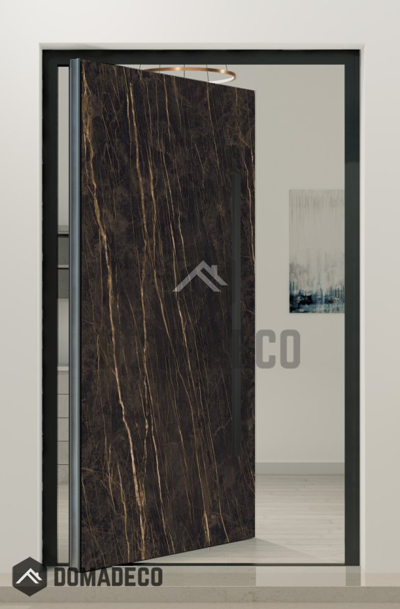 PIVOT V54 - aluminium taatsdeur bekleed met Noir Desir gesinterd kwarts