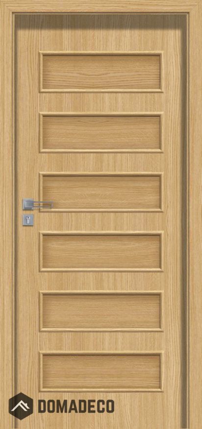 De deur is gemaakt van een houten rail en een beugelset met daarop twee verzonken HDF-planken, die bedekt zijn met een ECO TOP, HIGH TOP-oppervlakteafwerking. De kern is gemaakt van een honingraatachtige stabiliserende laag.