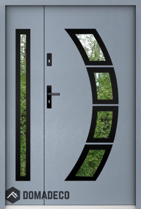 De deur is gemaakt van roestvrij staal. Binnenin is het gevuld met PUR-polyurethaanschuim en hout. De dikte van het deurblad is 55mm. Dubbel afdichtingssysteem - één afdichting bevindt zich in de opening van het kozijn en de andere bevindt zich in het ondersteunende deel van het deurblad. Dit vermindert trillingen en beschermt jouw huis tegen warmteverlies. Het volume verandert niet vonder invloed van atmosferische omstandigheden. Het kozijn heeft in de scharnierdelen en de vergrendelingspunten anti-inbraakversterkingen.