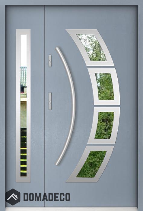 De deur is gemaakt van roestvrij staal. Binnenin is het gevuld met PUR-polyurethaanschuim en hout. De dikte van het deurblad is 55mm. Dubbel afdichtingssysteem - één afdichting bevindt zich in de opening van het kozijn en de andere bevindt zich in het ondersteunende deel van het deurblad. Dit vermindert trillingen en beschermt jouw huis tegen warmteverlies. Het volume verandert niet vonder invloed van atmosferische omstandigheden. Het kozijn heeft in de scharnierdelen en de vergrendelingspunten anti-inbraakversterkingen.