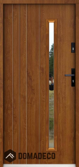 De deur is gemaakt van roestvrij staal. Binnenin is het gevuld met PUR-polyurethaanschuim en hout. De dikte van het deurblad is 55mm. Dubbel afdichtingssysteem - één afdichting bevindt zich in de opening van het kozijn en de andere bevindt zich in het ondersteunende deel van het deurblad. Dit vermindert trillingen en beschermt jouw huis tegen warmteverlies. Het volume verandert niet vonder invloed van atmosferische omstandigheden. Het kozijn heeft in de scharnierdelen en de vergrendelingspunten anti-inbraakversterkingen.